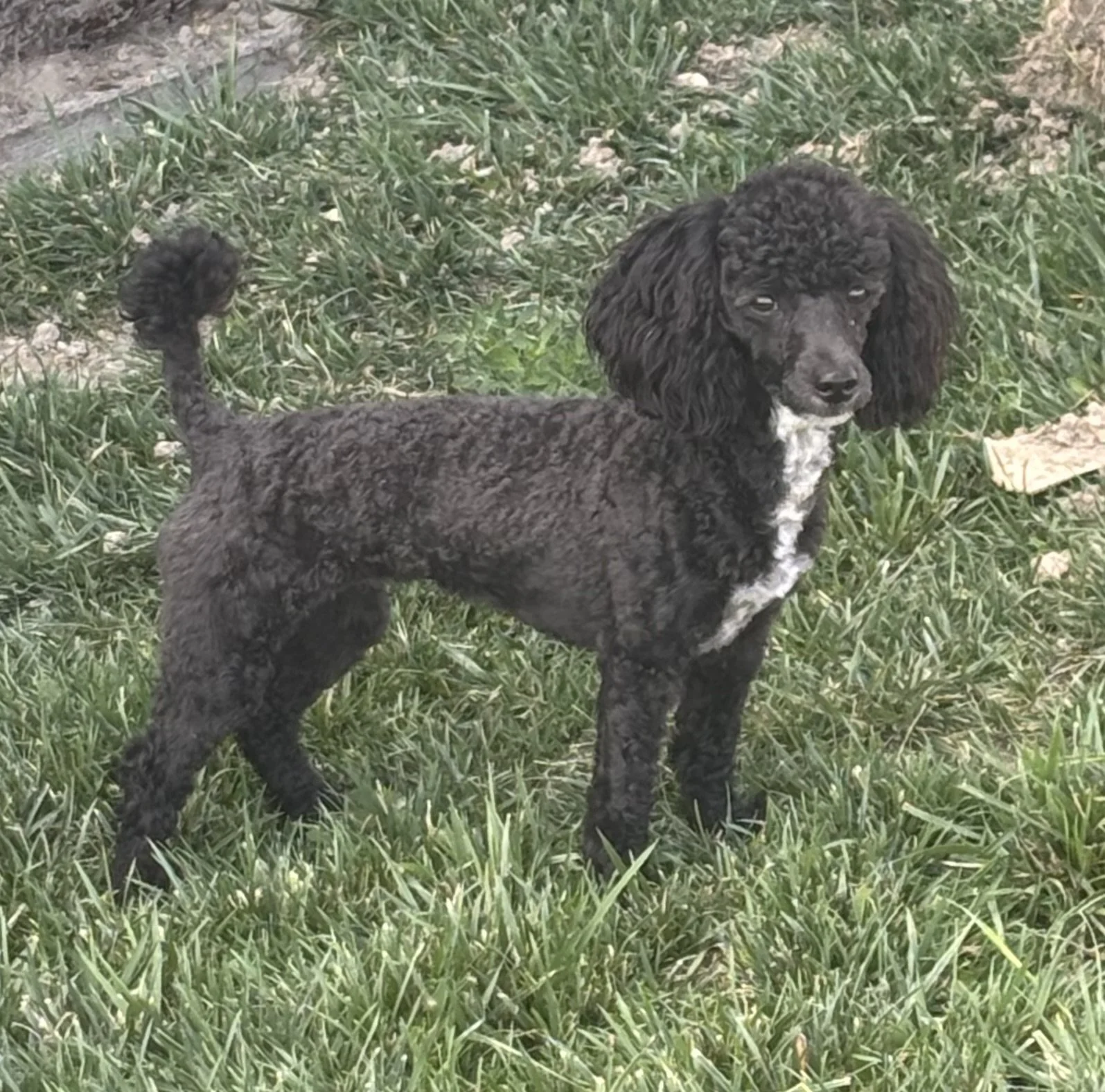 Molly is a fun loving AKC Registered puppy who we are hoping to bring into our breeding program. She bas a shorter stature allowing us to provide the much wanted small miniature or large toy poodle puppies. Paired with Jet our completely clear AKC register stud these two will provide stunning colors and perfect sized puppies for snuggling.